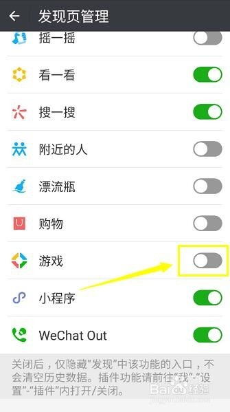 4. 关闭游戏入口:在通用设置页面中,找到“发现页管理”,点击进入。在这里,你会看到一系列的微信功能入口,找到“游戏”选项,将其关闭即可。