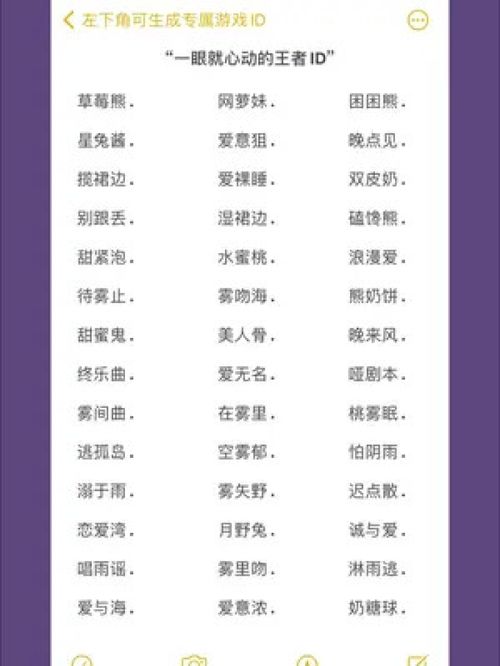 在众多英文游戏ID名字中,创意和个性是关键。一个好的ID不仅能够展现你的独特魅力,还能让你在游戏中留下深刻的印象。以下是一些充满创意的英文游戏ID名字,让你在游戏中成为焦点: