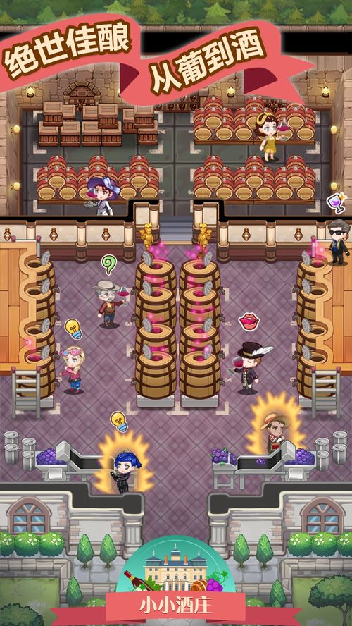 酒厂游戏,顾名思义,是一款以酿酒为主题的游戏。在这个游戏中,你可以扮演一个酒厂的老板,从选材、酿造到销售,每一个环节都需要你亲力亲为。听起来是不是很刺激?没错,这款游戏正是通过模拟真实酿酒过程,让你在虚拟世界中体验到酿酒的乐趣。