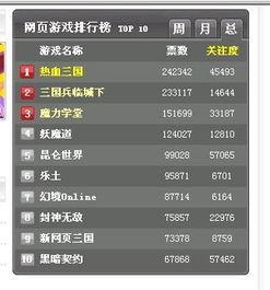 亲爱的游戏迷们,你是否在寻找那些能让你沉迷其中的网页游戏?别担心,今天我要带你走进一个充满奇幻与刺激的世界——网页游戏排行榜!在这里,我们将一起探索那些让人欲罢不能的热门游戏,感受它们独特的魅力。