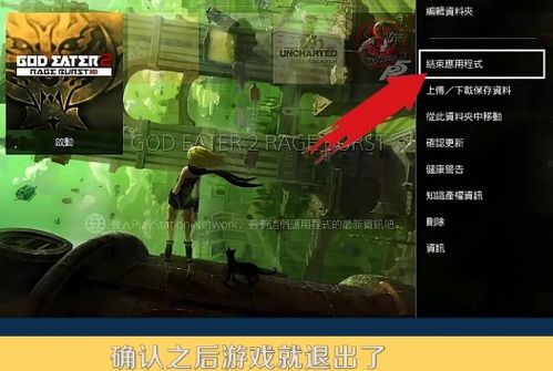4. 退出在线游戏:如果您正在玩在线游戏,退出游戏的方法与上述步骤类似。在游戏内按下PS按钮,选择结束应用程序,然后确认退出即可。需要注意的是,退出在线游戏时,请确保您的游戏进度已保存,以免造成数据丢失。