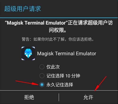 通过以上步骤,你已经在你的安卓系统上成功安装了Magisk。现在,你的手机已经拥有了超能力,可以自由地探索各种有趣的模块,让你的手机焕发出全新的活力。不过,请记住,Root权限可能会带来一定的风险,请在使用过程中谨慎操作。希望这篇文章能帮助你成功安装Magisk,让你的手机变得更加精彩!
