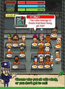食堂:拥挤的食堂,囚犯们排队领取食物,狱警在旁边监督。这里是你了解其他囚犯的机会。