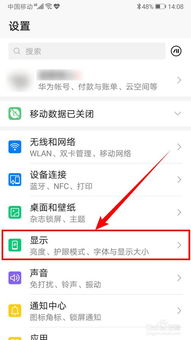 - 打开手机设置,找到“显示”或“显示与亮度”选项。