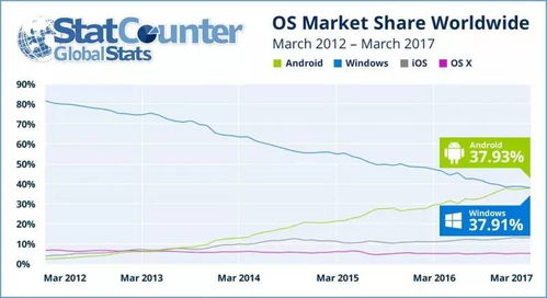 你知道吗?最近在科技界发生了一件大事儿,那就是安卓系统竟然在市场份额上超越了Windows系统!这可不是闹着玩的,咱们得好好聊聊这个话题,看看安卓是如何一步步走到今天的,又是如何打败了那个曾经的电脑霸主Windows的。