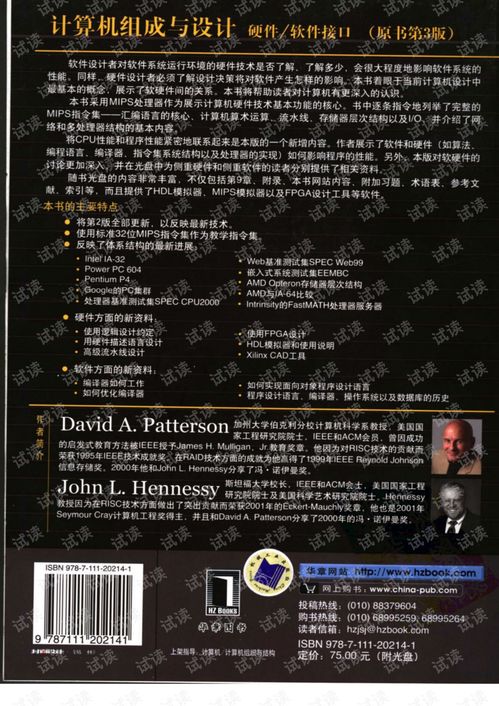 计算机组成与设计:硬件/软件接口是一本在计算机科学领域广受推崇的教材,由David A. Patterson和John L. Hennessy两位知名学者共同撰写。该书深入浅出地介绍了计算机硬件与软件之间的接口,为读者揭示了计算机系统设计的核心原理。本文将围绕该书的PDF版本,探讨其内容、特点以及在学习计算机组成与设计方面的价值。