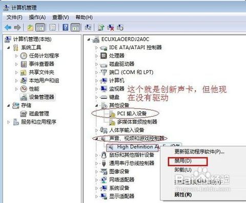如果设备管理器中显示声卡存在问题,可以尝试卸载现有的声卡驱动。右键点击“计算机”,选择“管理”,然后在“设备管理器”中找到声卡,右键点击并选择“卸载”。