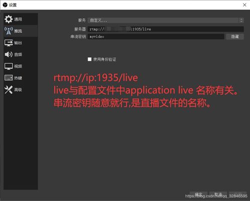 5. 设置直播平台:在OBS的“输出”选项中,选择你的直播平台。例如,选择“斗鱼直播”,然后输入你的直播间地址和密码。