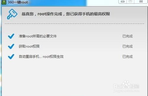 5. 验证root成功:root完成后,你可以使用一些root检测工具来验证是否成功。