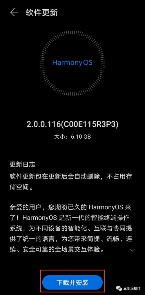 3. 下载鸿蒙系统:在系统更新页面,你会看到最新的鸿蒙系统版本。点击“下载”按钮,开始下载鸿蒙系统。