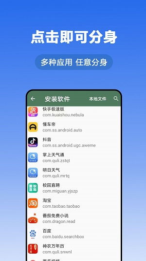 2. 第三方应用分身工具:如果你使用的手机系统没有自带应用分身功能,也可以下载第三方应用分身工具。在应用商店搜索“应用分身”或“多开助手”,选择一款适合自己的工具下载安装。
