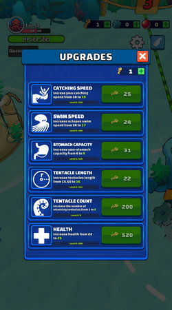 章鱼这款游戏,玩法非常简单。你只需要控制章鱼,躲避障碍物,收集金币,就能得分。游戏过程中,你还可以解锁各种道具,帮助你更好地完成任务。虽然游戏难度不高,但想要拿到高分,还是需要一定的技巧和耐心。
