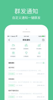 通知公告:点击“通知”按钮,就可以看到学校的最新通知。