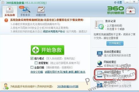 进入360系统急救箱主界面。