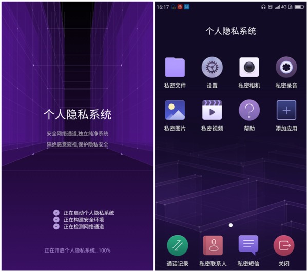 设置完成后,根据您设置的密码或指纹,即可进入私密系统。进入私密系统后,您可以在此界面中添加或隐藏应用,保护您的隐私。