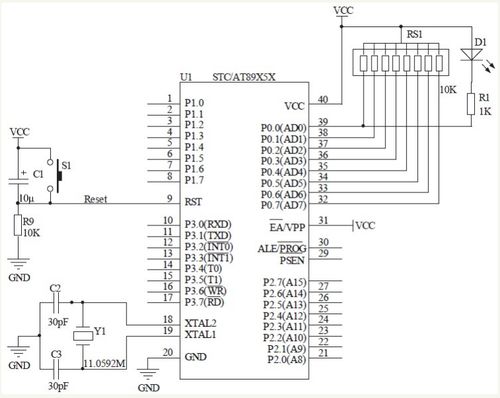 晶振电路是51单片机最小系统中的关键部分,它为单片机提供稳定的时钟信号。晶振电路主要由晶振和电容组成。