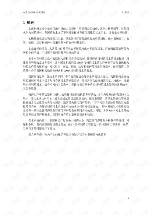 随着我国医药行业的快速发展,药品生产质量管理规范(GMP)的实施已成为确保药品质量的重要手段。水系统作为药品生产过程中的关键环节,其质量直接影响到药品的安全性、有效性和稳定性。本文将针对2010版GMP水系统实施指南进行详细解读,以帮助制药企业更好地理解和实施水系统管理。