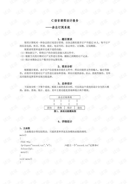 随着信息时代的到来,杂志作为一种传统的信息传播媒介,依然拥有着广泛的读者群体。为了更好地管理杂志订阅业务,提高工作效率,降低人工成本,开发一套C语言杂志订阅管理系统显得尤为重要。本文将详细介绍C语言杂志订阅管理系统的设计思路、功能模块以及实现方法。