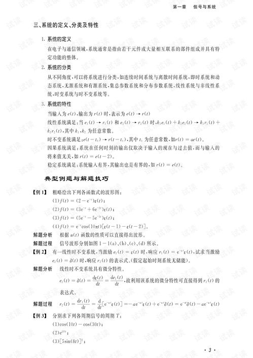 信号与线性系统分析是电子信息学科的重要基础课程,它主要研究信号在系统中的传输、处理和变换规律。线性系统分析是信号与系统分析的核心内容之一,它涉及到信号的时域、频域和复频域分析,以及系统函数、传递函数等概念。