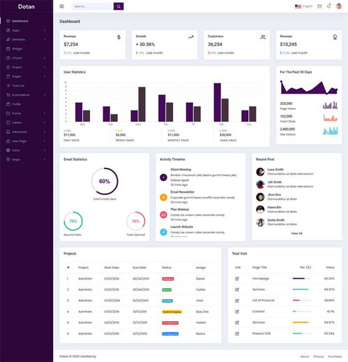 功能丰富:模板内置了多种组件,如导航栏、侧边栏、表格、表单、模态框等,满足各种业务需求。