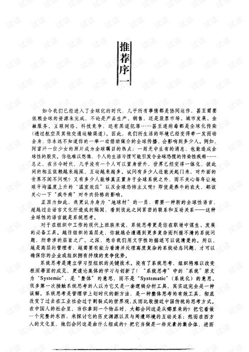 系统思考作为一种破解复杂问题的钥匙,在当今社会具有重要的应用价值。通过掌握系统思考的方法和工具,我们可以更好地认识世界、解决问题,为人类社会的发展贡献力量。