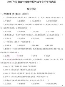 特岗教师计划是我国为促进农村教育事业发展而实施的一项重要政策。2017年,安徽省特岗教师招聘考试旨在选拔一批优秀人才到农村义务教育阶段学校任教,提高农村教育质量,促进教育公平。