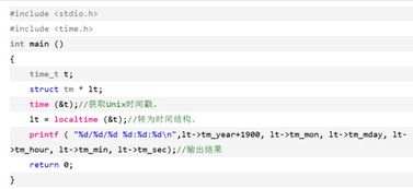 在C语言编程中,获取系统当前日期是一个基础且实用的操作。无论是用于日志记录、用户界面显示,还是其他应用程序,了解如何获取并处理系统日期都是非常重要的。本文将详细介绍如何在C语言中获取系统当前日期,并提供一个完整的示例代码。