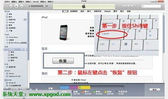 在iTunes中,同时按住Shift键并点击“更新”按钮。