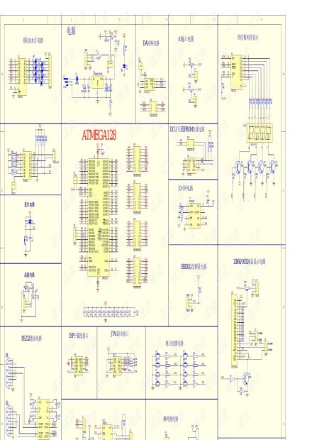 ATmega 128最小系统主要由以下几个部分组成: