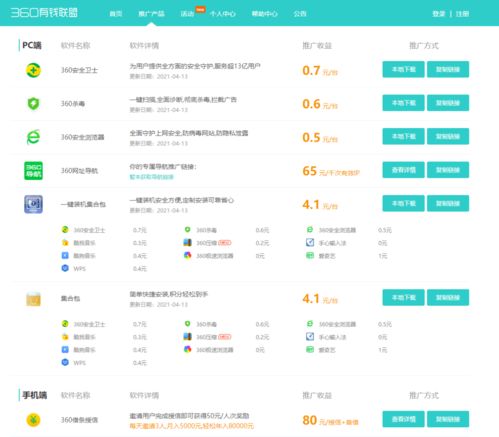 360有钱联盟系统是由北京奇虎科技有限公司(360公司)推出的一个推广赚钱平台。该平台旨在为广大电脑技术员提供一个便捷、安全的赚钱途径,同时推广360公司的各类软件产品。