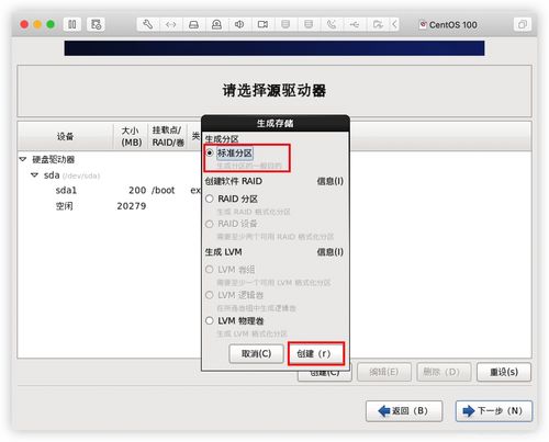 2. 选择“Standard Partition”选项,创建一个标准分区。