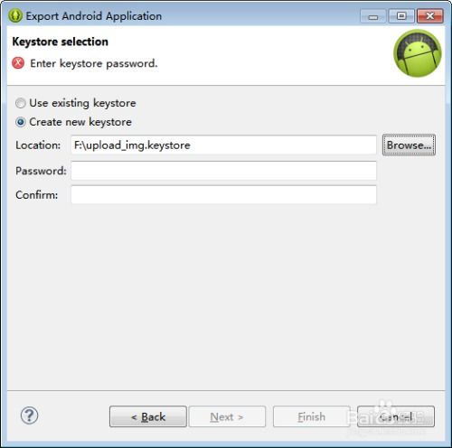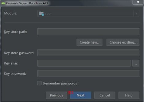 在“Generate Signed Bundle/APK”对话框中,选择“Create new keystore”,然后填写密钥库文件路径、别名和密码。点击“Next”。