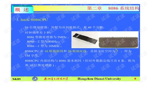 随着技术的发展,英特尔公司逐渐推出了更先进的处理器,如Pentium、Core等,但8086系统在计算机发展史上仍具有重要地位。
