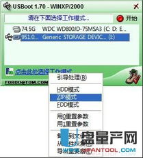 选择写入方式(如USB-HDD或USB-ZIP)。