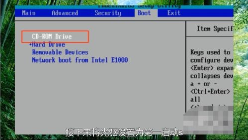 在BIOS设置界面中,找到“Boot”选项,将其设置为“CD/DVD”或“USB”启动。这样,电脑在启动时会先从光盘或U盘启动。