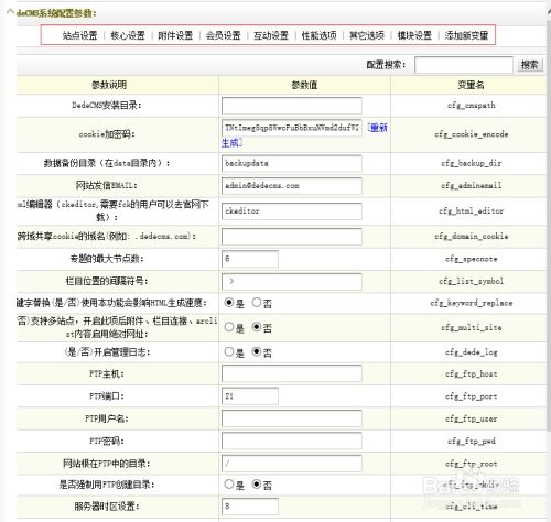 DedeCMS系统配置参数主要包括以下几个方面: