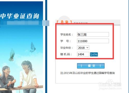 3. 查询信息:根据提示输入相关信息,点击查询按钮,即可获取毕业证书信息。
