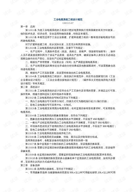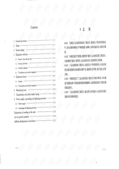 工业电视系统工程设计规范是指在工业生产过程中,为了确保生产安全、提高生产效率,对工业电视系统的设计、施工、验收等方面进行的一系列规定。本文将详细介绍工业电视系统工程设计规范的相关内容。