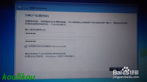 4. 根据系统提示进行操作,包括选择安装位置、设定个人账户和密码等。