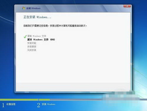 系统会自动开始安装Windows 7。安装过程中,电脑可能会重启几次。请耐心等待。