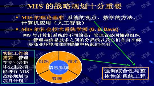 在当今数字化时代,管理信息系统(MIS)已成为企业发展的关键驱动力。有效的管理信息系统战略规划能够帮助企业实现业务目标,提高运营效率,增强市场竞争力。本文将探讨管理信息系统战略规划的重要性、关键要素以及实施步骤。