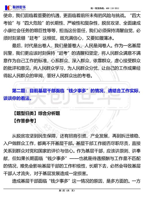 这类题目主要考察考生的价值观和职业道德。例如:“作为一名人民警察,你认为什么是最重要的?”这类题目要求考生能够阐述自己的价值观,并说明其在实际工作中的体现。