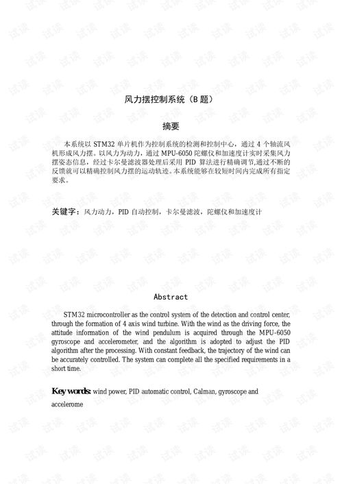 随着能源需求的不断增长和环境保护意识的提高,风力发电作为一种清洁、可再生的能源形式,受到了广泛关注。风力摆控制系统作为风力发电系统的重要组成部分,其设计对于提高发电效率和系统稳定性具有重要意义。本文将详细介绍风力摆控制系统的设计过程,包括系统方案、理论分析、电路设计、程序设计以及测试方案等内容。