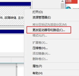 在“磁盘管理”窗口中,找到需要修改盘符的分区,右键单击该分区,选择“更改驱动器号和路径”。