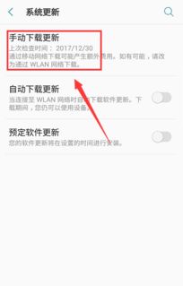 - 在设置中找到“系统更新”或“系统升级”选项,选择“手动升级”