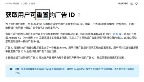 手机用久了是不是感觉广告越来越多,烦不胜烦?别急,今天就来给你支个招——安卓系统重置广告ID!这可是个神奇的小技巧,让你的手机广告变得清新自然,不再那么“辣眼睛”。下面就让我带你一步步探索这个神秘的世界吧!