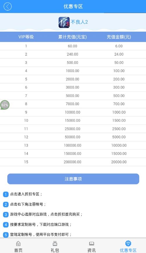 2. 下载优惠APP:市面上有很多专门提供充值折扣的APP,比如“应用宝”、“豌豆荚”等。这些APP会实时更新各大平台的充值优惠信息,用户只需下载并注册,就能轻松找到折扣。