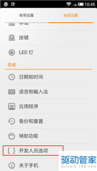 2. 滑动屏幕,找到“开发者选项”。