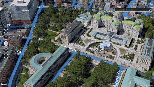 微软卫星地图支持3D视图模式,用户可以通过旋转、缩放等操作,直观地观察地球表面的地形地貌。这种模式尤其适合专业人员或抽象能力较强的用户,帮助他们更好地理解地理空间。