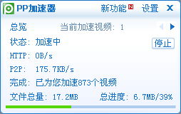 PP加速器是由PPTV推出的一款免费视频加速软件。它采用先进的互联网技术,如优化后的点对点传输(P2SP)、多任务下载、Web感知下载、智能Cache等,为视频网站提供视频加速服务。PP加速器不仅能够有效减轻服务器压力、节省消耗带宽、降低实际运营成本,还能让用户享受到在线流畅观看视频的愉悦感受。